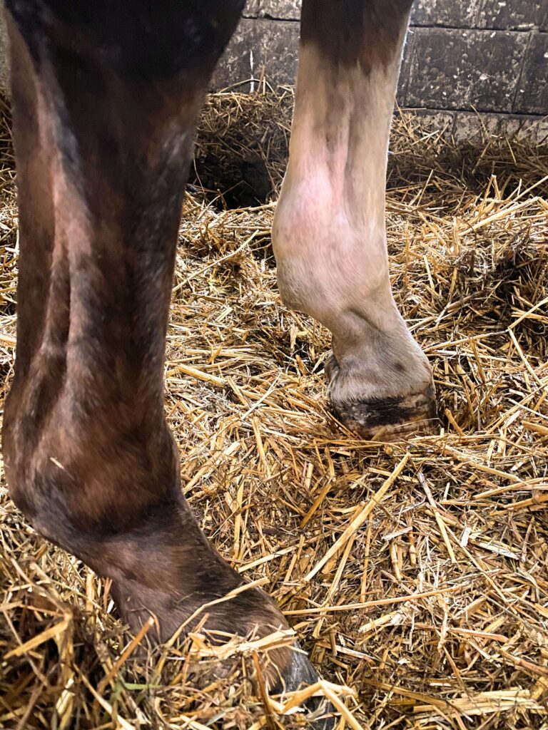 7 Jarig dressuurpaard met zware peesblessure. Was reeds geopereerd en heeft verschillende revalidatie-therapiën gevolgd. Advies DA : inslapen. Na meerdere verschillende en natuurgeneeskundige therapiën is dit paard er toch weer bovenop gekomen, is super happy en wordt weer normaal gereden